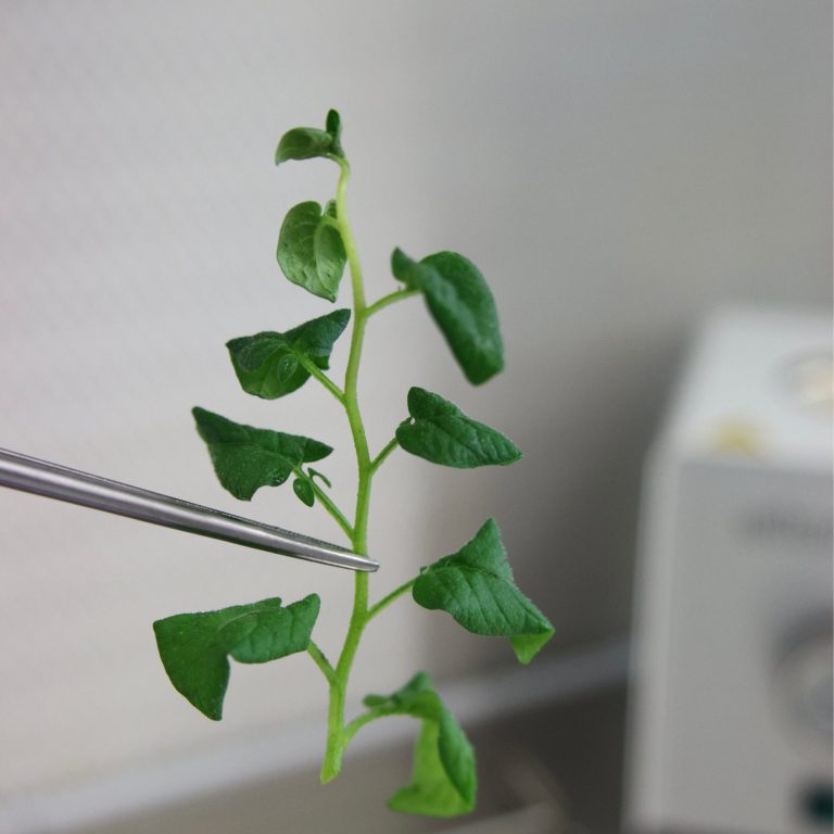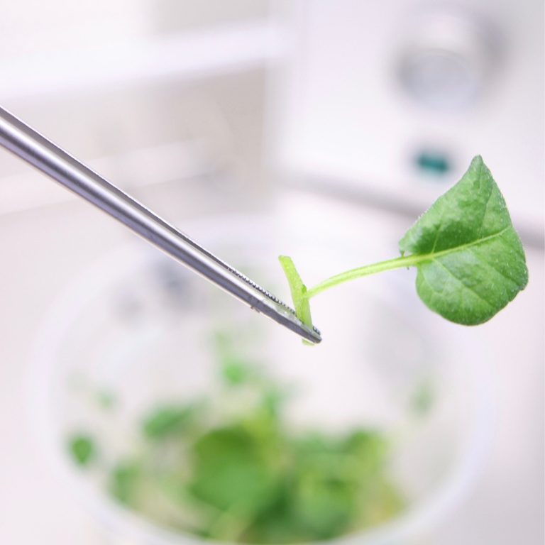 Using clean tools and gloves (to avoid cross-contamination), we cut the material into smaller sections, each with one stem and one bud. Extra stems or leaf parts are removed to make sterilisation easier.
